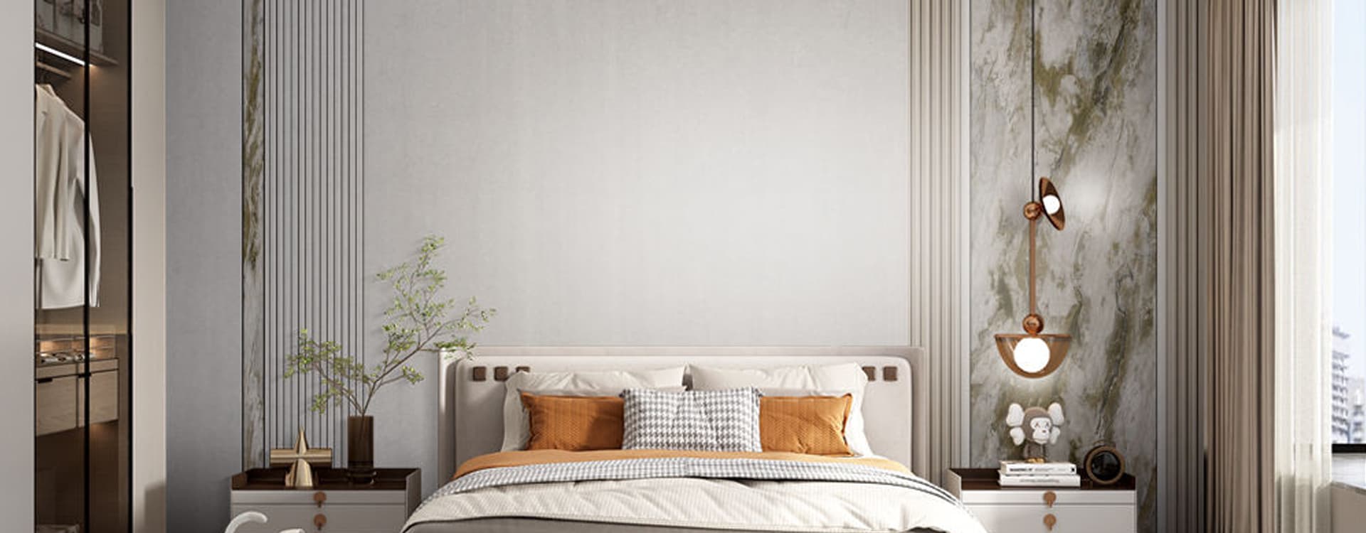 集成岩板采用薄型瓷质岩板与背衬基材多维材质结构,通过 CUG 体合技术稳定制作而成,适用于高端家装整体空间,尤其是墙面的应用。